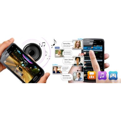 Prostorný displej s úhlopříčkou 3,7" je výkladní skříní grafiky, her, textu, videa a dalšího obsahu, příjemně se používá a díky elegantnímu designu vám hladce vklouzne do dlaně nebo do kapsy.