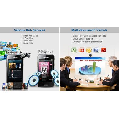 Galaxy Beam přináší revoluční možnost zobrazení obrazu. Díky vestavěnému projektoru tak snadno můžete odprezentovat kdykoliv Vaší práci nebo si pustit film pohodlně na zeď. Galaxy Beam je také proto vybavený baterií s velkou kapacitou. Plynulý běh videa a celého systému obstará dvoujádrový 1GHz procesor. Pro uložení dat je možné využít interní paměť telefonu, která činí 8GB nebo paměťové karty typu microSD.