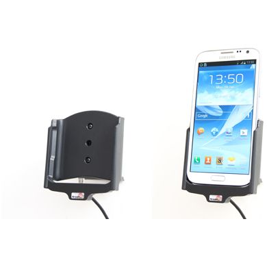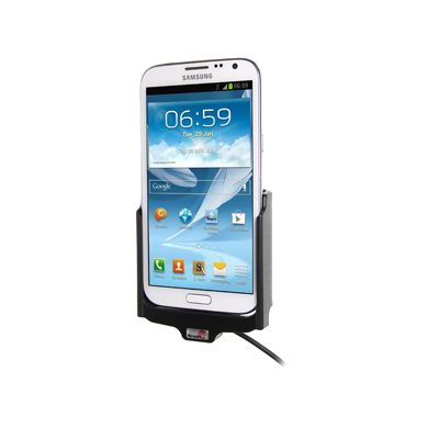 Držák na mobilní telefon Samsung Galaxy Note II má vestavěné nabíjení z cigaretového zapalovač (CL 12/24V) a je určen pro telefon bez pouzdra. Držák je velmi pevný, telefon se v něm neklepe a nevibruje. Držák má kloub, díky kterému může být mobilní telefon kdykoliv jednoduše natočen na šířku nebo na výšku nebo naklopen. Držák se upevňuje na Brodit ProClip.