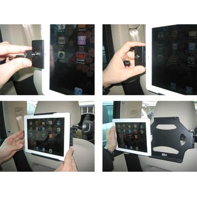 Jedná se o držák na opěrku pro zařízení Apple iPad 2 s možností uzamknutí, který využijete, pokud používáte váš iPad 2 na zadních sedačkách ve vozidle. Držák se připevňuje na přední opěrku hlavy. Instalace je velice snadná a nejsou při ní třeba žádné speciální nástroje a náčiní. Po uchycení iPadu 2 do tohoto držáku, je možné jej připojit k napájení.