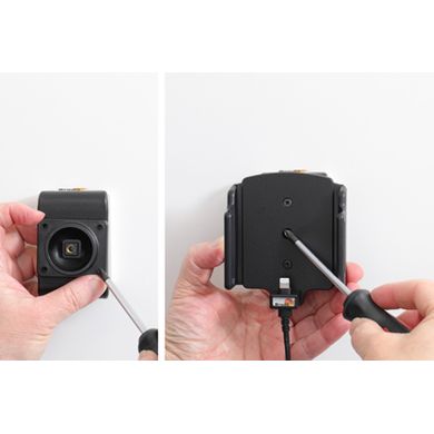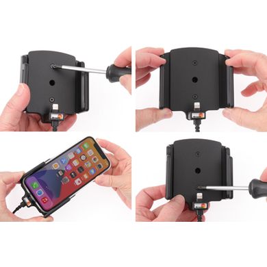 Držák je velmi pevný, telefon se v něm neklepe a nevibruje. Držák má kloub, díky kterému můžetelefon kdykoliv jednoduše natočen na šířku nebo na výšku nebo naklopen. Držák se upevňuje na Brodit ProClip.