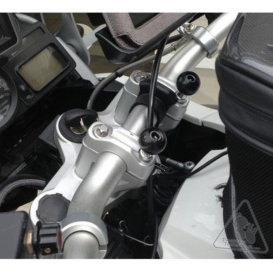 RAM úchyt na motorku nebo skútr na řídítka do závitu šroubu s 1" kulovým čepem. Úchyt se připevňuje do závitu libovolného M8 šroubu a nahradí původní šroub. Patentovaný 1" kulový čep je vyroben z velmi kvalitní pryže tak, aby tlumil nárazy a vibrace, které by jinak byly přenášeny na upevněné elektronické zařízení.