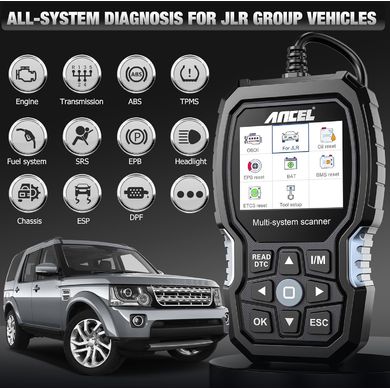 ANCEL LD700 využívá nejmodernější technologii založenou na VIN kódu vozidla, která umožňuje automobilovým technikům nebo domácím mechanikům jedním kliknutím identifikovat informace o vozidle, jako je značka, rok výroby, model atd., a to téměř bez jakýchkoli provozních problémů. Dokáže pokrýt všechny moduly a systémy vozidel skupiny JLR, provádět hlubší diagnostiku na úrovni OE, pomáhá rychle odhalit příčinu závad vozu a snadno vypnout varovné kontrolky. S pomocí profesionálního diagnostického nástroje LD700 můžete bez námahy diagnostikovat problém, aniž byste museli vozidlo brát ke specialistovi. ANCEL LD700 poskytuje komplexní sadu funkcí pro diagnostiku a údržbu klíčových systémů vozidel Land Rover a Jaguar. Umožňuje detekovat závady a načítat chybové kódy v systémech motoru, převodovky, airbagů (SRS), ABS, baterie, filtru pevných částic (DPF) a dalších. Přístroj nejen identifikuje problémy, ale také asistuje při jejich řešení – po opravě dokáže vymazat chybové kódy a otestovat funkčnost opravených komponent.