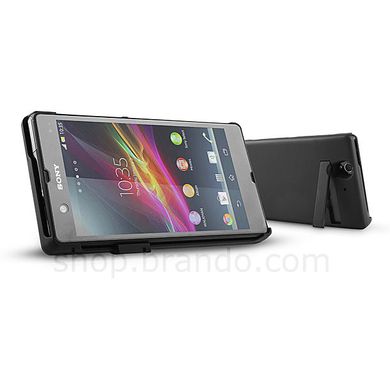 Přenosná záložní baterie v černé barvě pro Sony Xperia Z, která zároveň slouží jako zadní ochranné pouzdro zabraňující poškrábání a různému poškození. Jednoduše stačí telefon kabelem připojit například k počítači a baterie se sama začne nabíjet. Díky nízké váze Vám nebude překážet a elegantní design nijak nekazí celkový vzhled telefonu.