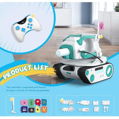 RC bojový tank pro robota Eilik s LED osvětlením, 2.4GHz ovladačem a herními režimy pro 1–8 hráčů. Imerzivní zážitek s animacemi a zvuky.