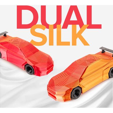 Dvoubarevný PLA filament s hedvábným leskem a měnící se barvou podle úhlu pohledu. Snadný tisk, ekologická cívka. 1,75 mm, 1 kg.