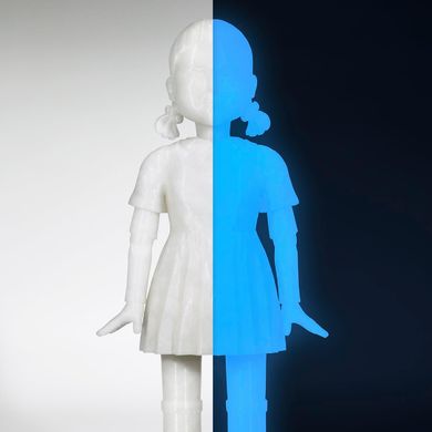 PLA filament s přirozenou barvou za dne, modrým světélkováním ve tmě. Vylepšené PLA+, vyžaduje tvrzenou trysku. 1,75 mm, 1 kg, certifikace REACH/RoHS.