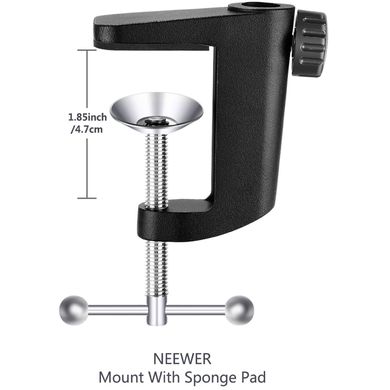 Sada kondenzátorového mikrofonu: mikrofon, stojan s odpruženým ramenem, svorka, absorbér otřesů, pop filtr, pěnový kryt