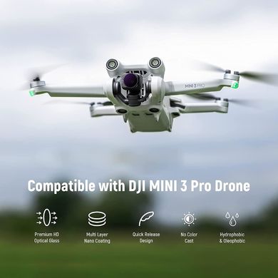 Sada obsahující 6 fotografických filtrů plně kompatibilních s dronem DJI Mini 3 Pro: 1× ND8/PL filtr, 1× ND16/PL filtr, 1× ND32/PL filtr, 1× ND64/PL filtr, 1× CPL filtr, 1× UV filtr. Fúze 2v1 umožňuje neutrální hustotu a polarizační efekt zároveň, odstraňuje nežádoucí odlesky od reflexních povrchů a zlepšuje sytost a jasnost barev při fotografování za jasného slunečného denního světla.