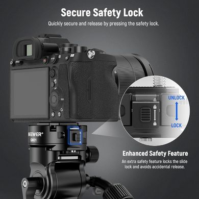 Neewer GM31 je sada rychloupínací desky a patice pro stativ, čtvercový Arca typ se systémem automatického zamykání, montážní deska QR kamery s klipem na kameru
