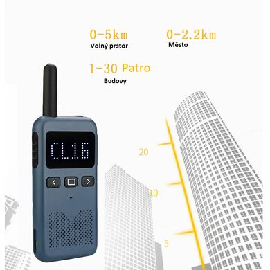 Vysílačka RETEVIS RB619, výkon 0,5W, 16 kanálů, pásmo PMR, jednoduchý 1,7" displej, snadné ovládání, dosah až 5 km, dobíjení USB-C