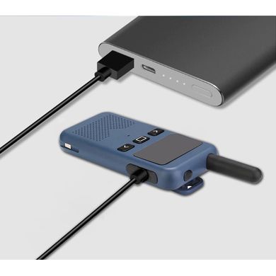Uvnitř vysílačky se nachází integrovaná Li-Ion baterie o kapacitě 1650mAh. Díky této velkokapacitní baterii vydrží vysílačka v pohotovostním režimu až 5 dní. Při běžném pracovním režimu vydrží baterie 8 – 12 hodin. Baterie se nabíjí pomocí USB-C kabelu ( nabíječka a kabel jsou součástí balení ). Velkou výhodou je že použitím USB-C konektoru máte možnost nabíjet kdykoliv bude potřeba. Pro nabíjení tak můžete použít i powerbanku, cigaretový nabíječ ve vozidle a dokonce i PC USB port.