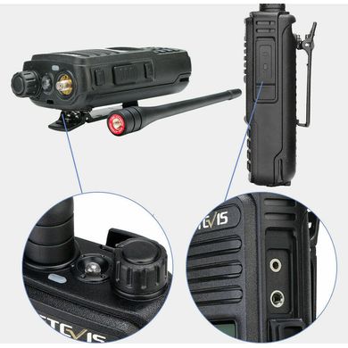 Ruční dual-band radiostanice, miniaturní rozměry, výkon 5W, pásmo UHF/VHF, dosah až 3 km, počet kanálů 200, FM rádio, VOX, konektor „Kenwood“