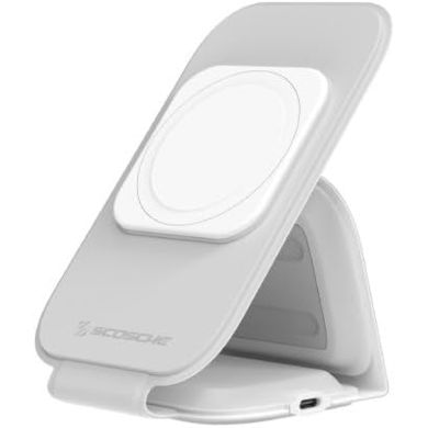 Duální MagSafe nabíječka 2v1, iPhone 7,5 W a AirPods 5 W, Samsung až 10 W (v ploché poloze), skládací stojánek/podložka, nastavitelný úhel, cestovní, bílá
