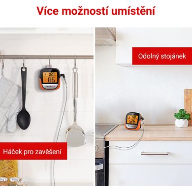 Aplikace také umožňuje nastavit limitní alarm pro zvolený teplotní rozsah s upozorněním na vysokou (HI) a nízkou (LOW) teplotu. Díky přehlednému podsvícenému LCD displeji můžete jedním pohledem zkontrolovat nastavenou i aktuální teplotu. Teploměr lze použít při přípravě nejrůznějších pokrmů, například na grilu, v troubě, v udírně nebo při smažení. Teploměr má předprogramované teploty pro drůbež, hovězí, telecí, vepřové, hovězí maso, šunku, ryby, jehněčí i krůtí maso různých stupňů propečení.