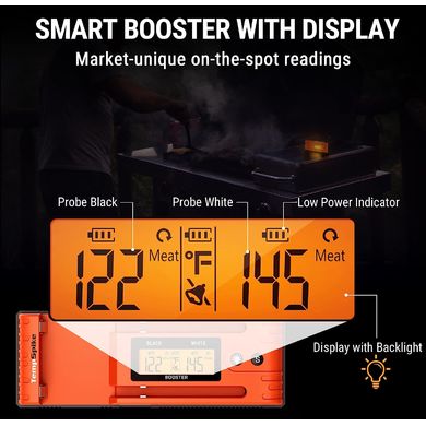 Tyto přednastavené teploty jsou navrženy tak, aby vám pomohly při přípravě chutných pokrmů. Kromě toho máte v aplikaci možnost nastavit teplotu okolí a alarmy před vařením. Tyto alarmy se spustí, když se teplota pohybuje v rozmezí 3 °C / 6 °C / 9 °C od požadované teploty. Váš chytrý telefon vám pak připomene, abyste se vyhnuli převaření nebo připálení pokrmu, a zajistí tak pokaždé dokonalý výsledek. Základna TempSpike TP-962 zároveň funguje jako zesilovač signálu pro bezdrátový teploměr se sondou. Navíc poskytuje indikaci slabé baterie. Výdrž baterie sondy může po úplném nabití trvat až 36 hodin. Bezdrátové sondy TP-962 jsou vybaveny nerezovou ocelí s krytím IP67, takže se snadno čistí.