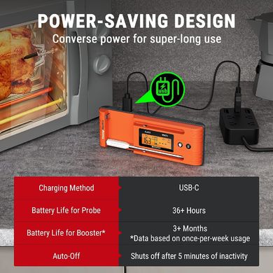 Proto je ideální pro různé způsoby přípravy pokrmů, jako je pečení v troubě, grilování, uzení a sous vide. Teploměr s podsvíceným displejem vám umožní snadno sledovat teplotu i za zhoršených světelných podmínek, takže vaření, pečení, grilování a uzení bude hračka. Uživatelsky přívětivá, intuitivní a všestranná aplikace nabízí řadu funkcí pro příjem okamžitých upozornění a umožňuje vytvářet personalizované grafy času a teploty. Aplikace dále obsahuje přednastavené teploty pro různé druhy masa, jako je hovězí, ryby, mleté hovězí, mletá drůbež, jehněčí, vepřové, drůbeží, krůtí a telecí.