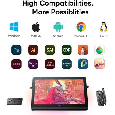 Spolu s tabletem získáte dva špičkové stylusy X3 Pro. Ergonomicky tvarovaný stylus X3 Pro Roller disponuje přizpůsobitelným rolovacím kolečkem. Jeho lehčí sourozenec X3 Pro Slim zase nabízí odnímatelná tlačítka, která při kreslení zabrání nechtěným dotekům. S citlivostí na 16 384 úrovní přítlaku, 3 gramy aktivační síly a 60° detekce sklonu pera získáváte dokonale hladký a precizní zážitek z kreslení. K oběma stylusům dostanete i praktické pouzdro, které slouží zároveň jako stojánek. S 23 náhradními hroty (9 pro Slim, 7 standardních a 7 plstěných pro Roller) budete mít vždy po ruce vše potřebné k tvoření. Součástí balení je i bezdrátová klávesnice ACK05 s řadou vychytávek. Za svůj design získala ocenění Good Design Award 2023. Kromě dobře navrženého otočného ovládacího prvku nabízí deset uživatelem přiřaditelných kláves. Díky Bluetooth 5.0 je rychlá a prostorově nenáročná.