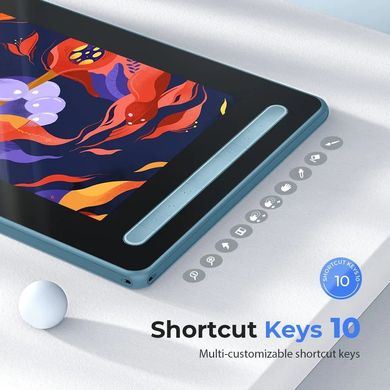 Grafický tablet s LCD, rozměry 434×255,8×12,89 mm, stylus X3 Elite, podporuje náklon pera 60°, 10 tlačítek klávesových zkratek, rozlišení 5080LPI, USB-C.