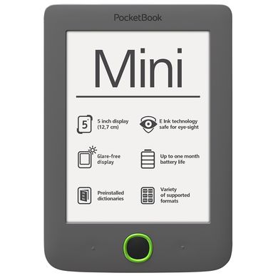 PocketBook Mini nabízí při celkových rozměrech přibližně 14,2×10×0,7 cm pro čtení pěti palcový displej, který využívá oblíbenou technologii elektronického papíru, která je šetrná pro oči a působí podobným dojmem, jako skutečný papír. Tato technologie odebírá z vestavěné baterie energii pouze ve chvíli, kdy uživatel otáčí (překresluje stránku) a díky tomu poskytuje na jedno nabití až měsíc intenzivního čtení. Kontrast displeje E-Ink navíc dovoluje si číst za přímého slunečního svitu – čtenáři si tak můžou číst nerušeně i během prázdnin u bazénu nebo na pláži.