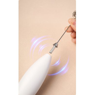 Díky jeho modernímu designu se skvěle hodí do každé kuchyně a jeho ovládání je intuitivní a jednoduché. Stačí pouze vložit 2 baterie AA a stisknout horní tlačítko a držet, dokud nemáte pěnu dle představ. Po použití stačí pouze nerezovou metličko vložit do vody a spustit rotaci.