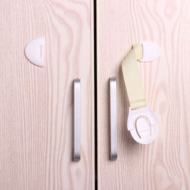 Látkové bezpečnostní zábrany proti otevření dvířek, snadná instalace pomocí oboustranné lepící pásky