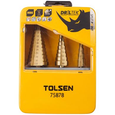 TOLSEN sada stupňovitých vrtáků obsahuje tři