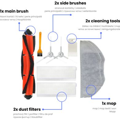 Sada náhradních filtrů, kartáčů a mopů pro robotické vysavače Xiaomi Mi Robot Vacuum Mop Essential G1, Rowenta RR7975WH, RR7987WH.