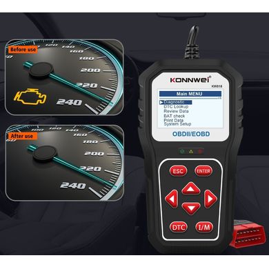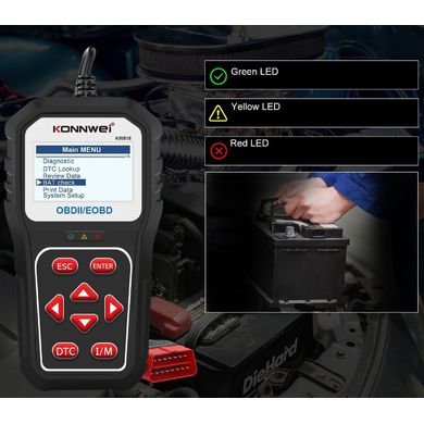 Univerzální ruční autodiagnostika motoru, vhodná pro většinu aut s protokolem OBD II od roku 1996, resetuje MIL, integrovaný rychlý tester autobaterie