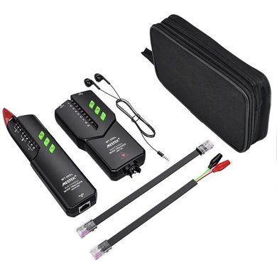 Pokročilý tester kabelů, digitální detekce signálu, identifikace kabelů vč. RJ11 a RJ45, vzdálenost signálu 0 – 300 m, napájení 9V