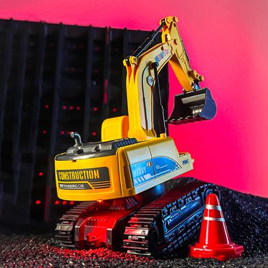 Tento detailně propracovaný RC model kombinuje nákladní auto se silným motorem, odnímatelnou vlečkou a pásovým bagrem s plně funkčním ramenem. Děti si tak mohou vyzkoušet skutečnou stavební akci – nakládání, převoz i vykládku materiálu. O zábavu se postarají také funkční světlomety, střešní světla a zvukové efekty včetně tří melodií.