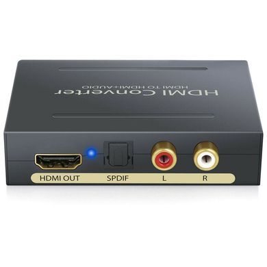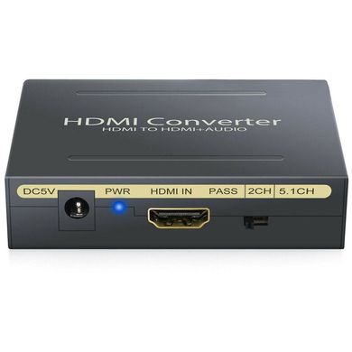 Konverter HDMI na HDMI + audio umožňuje rozdělit vstupní signál HDMI zvlášť na obrazová a zvuková data. Obrazová data jsou posílány dále díky HDMI výstupu a zvuková data jsou distribuovány pomocí dvou cinch konektorů, nebo optického výstupu. Konverter podporuje rozlišení fullHD 1080p@60Hz.