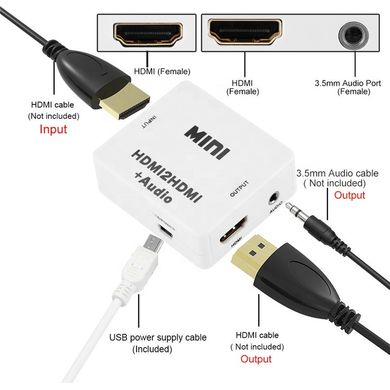 Mini HD video konvertor HDMI na obrazový HDMI signál a zesílený AUDIO signál s výstupem analogové audio 3,5 mm