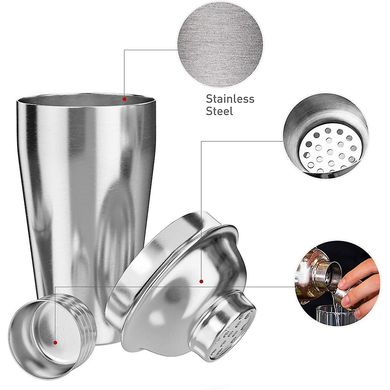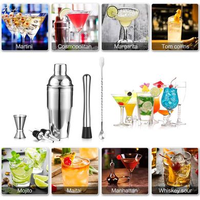 Barmanský set 6 dílů z nerezové oceli, shaker objem nádoby 450 ml, vhodné i začínají „barmany“