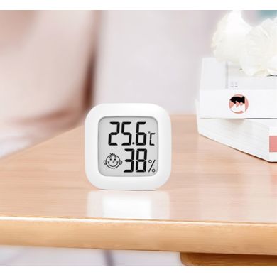 Malý domácí teploměr, měří teplotu, vlhkost a komfort vzduchu, rozsah –50°C-70°C, RH 10%-99%, přesnost ±1℃, přehledný displej
