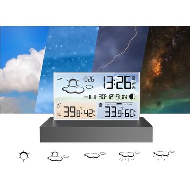 Moderní bezrámečková meteostanice s předpovědí počasí a hodinami i s duálním budíkem je úžasným praktickým doplňkem každé