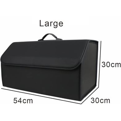 Elegantní a praktický organizér do kufru auta z PU kůže a zavíráním o základním objemu zhruba 44 litrů.