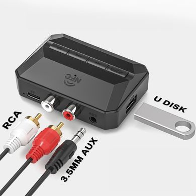 Bluetooth 5.3 všestranný audio přijímač, funkce NFC, microUSB, dosah cca 10 m, kompaktní rozměry, jednoduchá obsluha, černá barva
