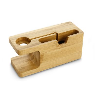 Dřevěný jednoduchý stojánek pro iPhone a Apple Watch na