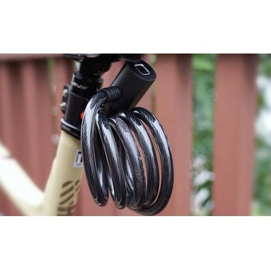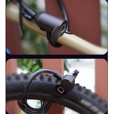 Chytrý zámek na kolo s otiskem prstu, spirálový s úchytem na rám, černý