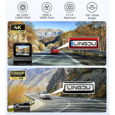 Lingdu V620 4K Dash Cam: Duální záznam ve 4K+1080P, ADAS funkce, noční vidění, Wi-Fi 6, GPS a 24h parkovací režim. Špičková ochrana na každé cestě.
